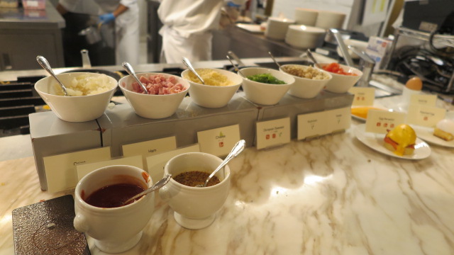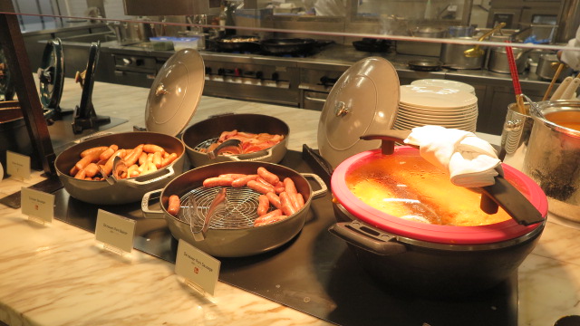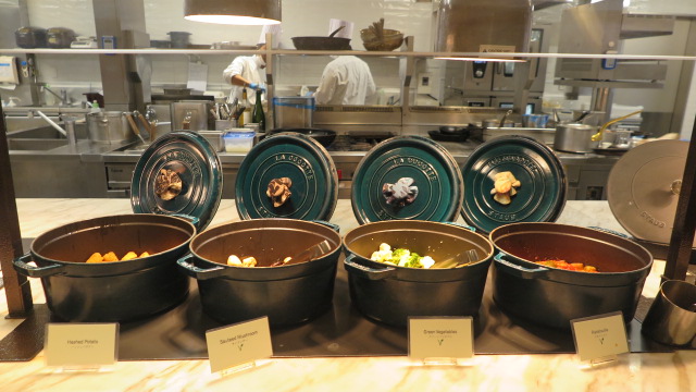 構成の幅がかなり広く、 ライブキッチンでは目玉焼き・オムレツ・エッグベネディクトが出来立てで提供されます。